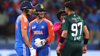 During India’s chase, openers Abhishek Sharma and Shubman Gill engaged in heated exchanges with Pakistan pacers Shaheen Afridi and Haris Rauf, dominating them with aggressive strokeplay.